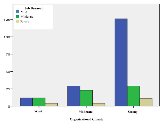 Data of this survey disclosed that 11.2% endorsed weak and 22.4% revealed moderate organizational climate scores; while burnout and organizational climate were significantly inversely related, 14.2% of staff with weak organization had severe burnout. The role of environment in input or output of workers can never be overlooked. Organizational climate explicitly supplements every profession [8, 11]. No two work-units are identical. Any organization is unique in terms of its climate, goals, roles and expectations of its servants [15]. Organizational compatibility enhances motivation and accelerates chances of promotion [20]. It’s one of the prime responsibilities of managers and higher officials to create and maintain a workable atmosphere. Soothing work environment travels down the chain.