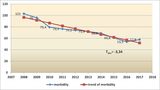 Obviously, morbidity of 52.2 cases per 100,000 population in our country reached by 2017, still is far from the average incidence rates of the presented countries and the gap will hardly be overcome in the nearest decade.